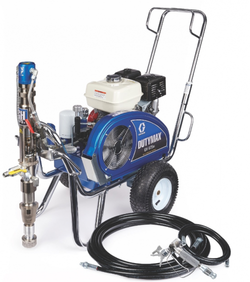 Máy GH DUTYMAX 675DI là dòng máy phun áp lực lớn được phát triển bởi hãng GRACO. Với áp lực phun lên đến 6750psi (465 bar) và lưu lượng lên đến 5.6l/phút, GH DUTYMAX 675DI dễ dàng xử lí các loại vật liệu đặc cứng đầu khó phun nhất, thậm chí cả những chất chống thấm đặc silicon, chất phủ elastomeric.., Ngoài khả năng phun bột trét ( bả ), sơn nước, sơn dầu , sơn epoxy máy còn phun được các chất chống thấm, chống cháy, các vật liệu sơn bảo vệ có hàm rắn cao …Thêm vào đó, với thiết kế nhỏ gọn DUTYMAX 675DI có thể được vận chuyển dễ dàng bằng xe tải nhỏ và cơ động trên mọi loại công trường, kể cả trên mái nhà.